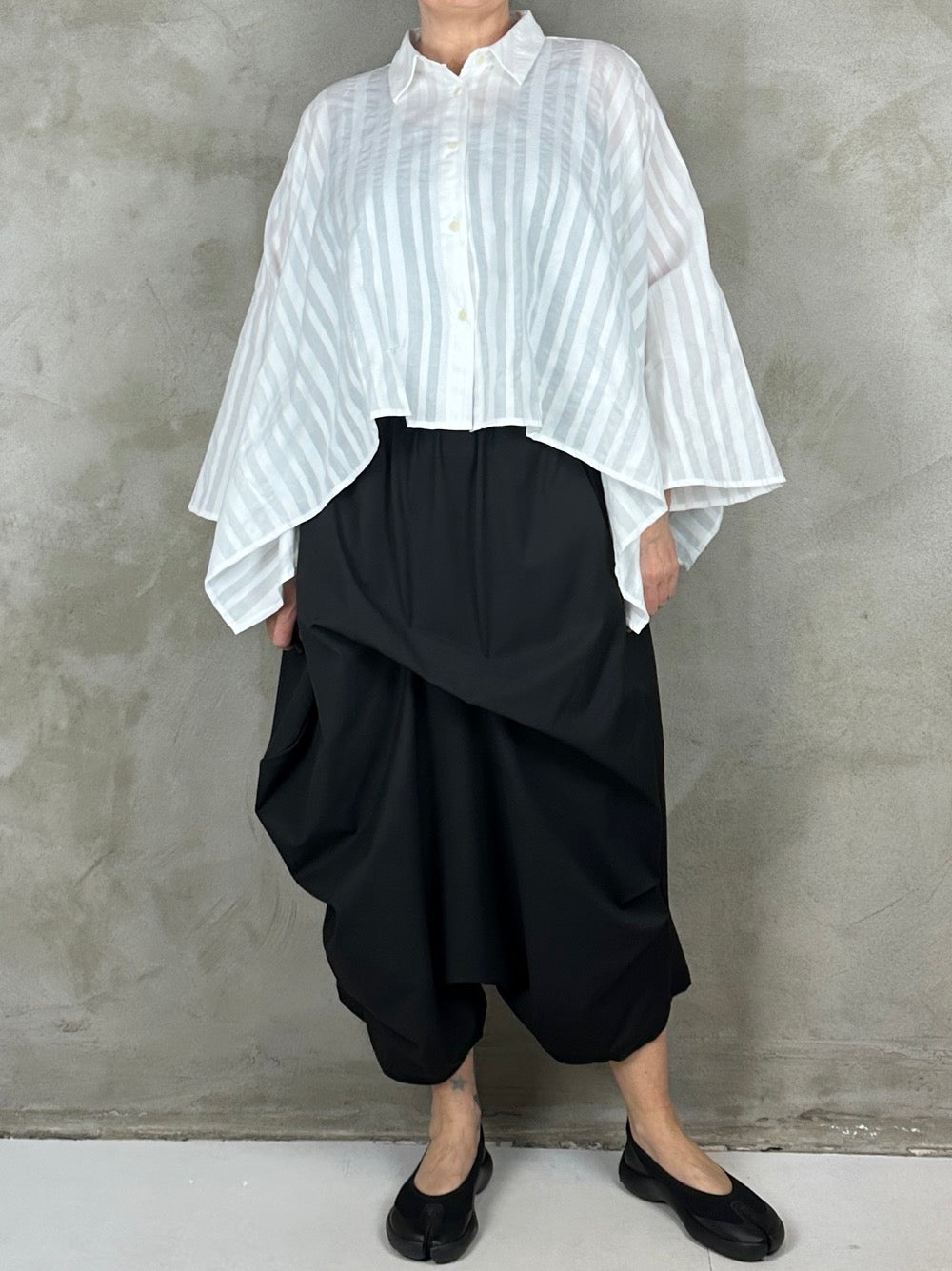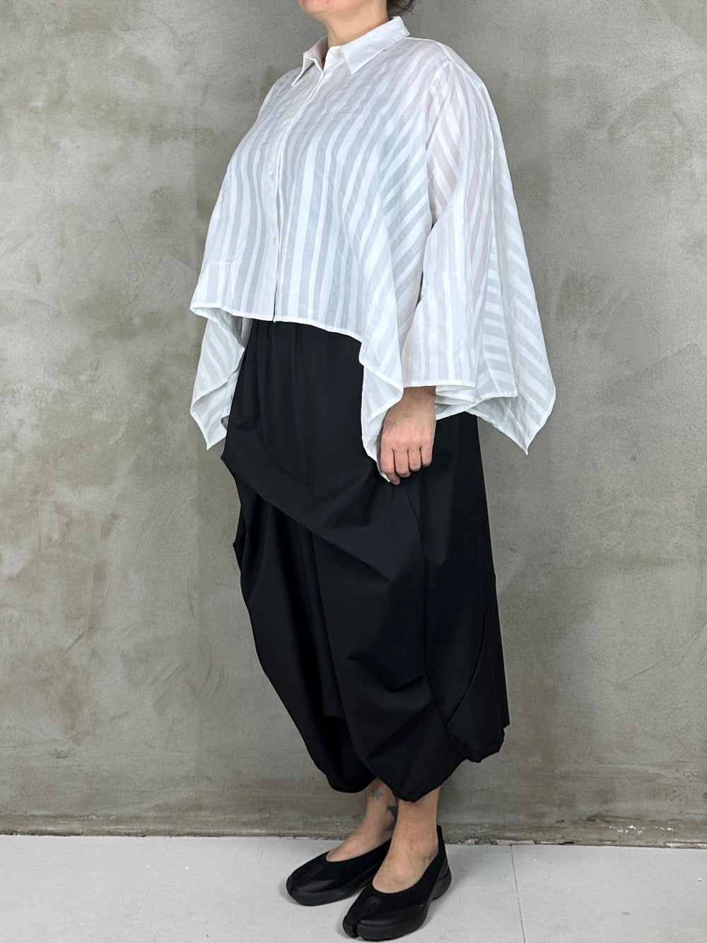 Kort bred skjortebluse med stumpet ærme.