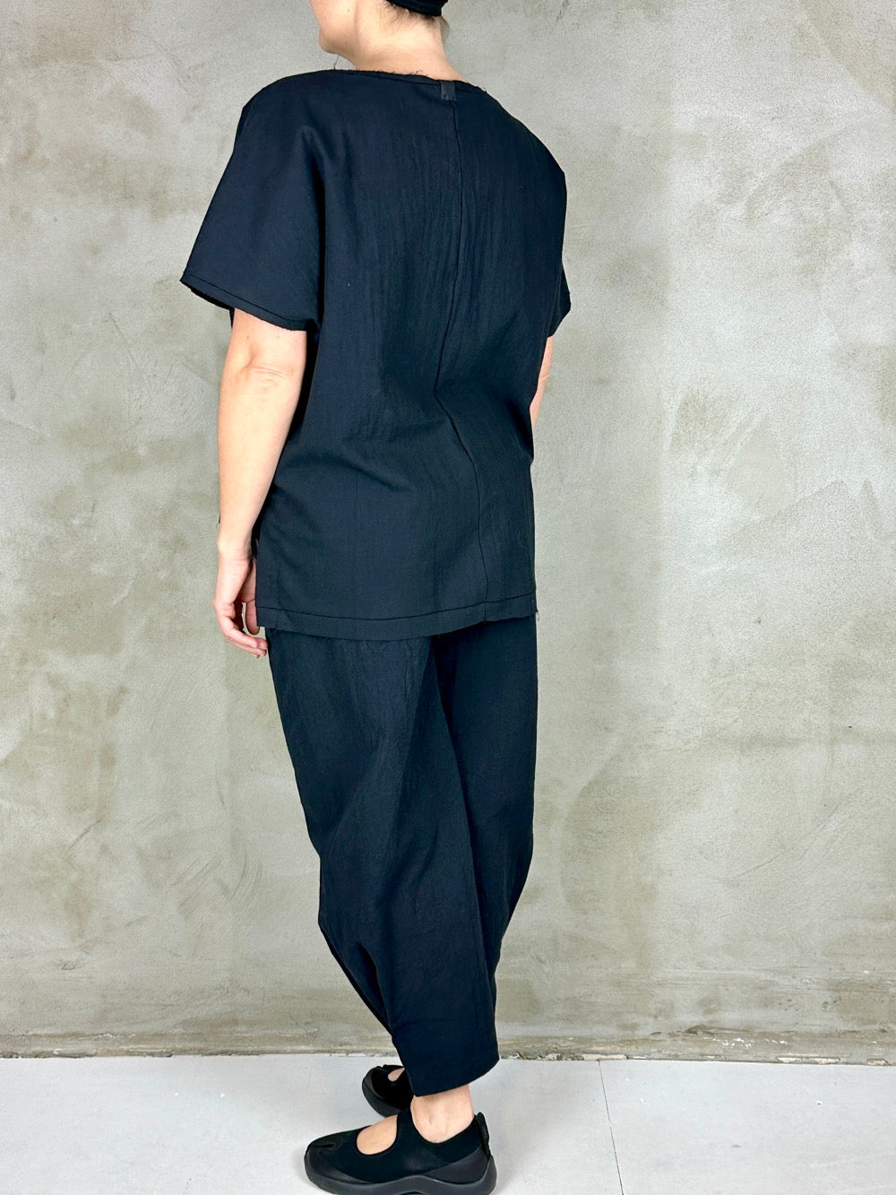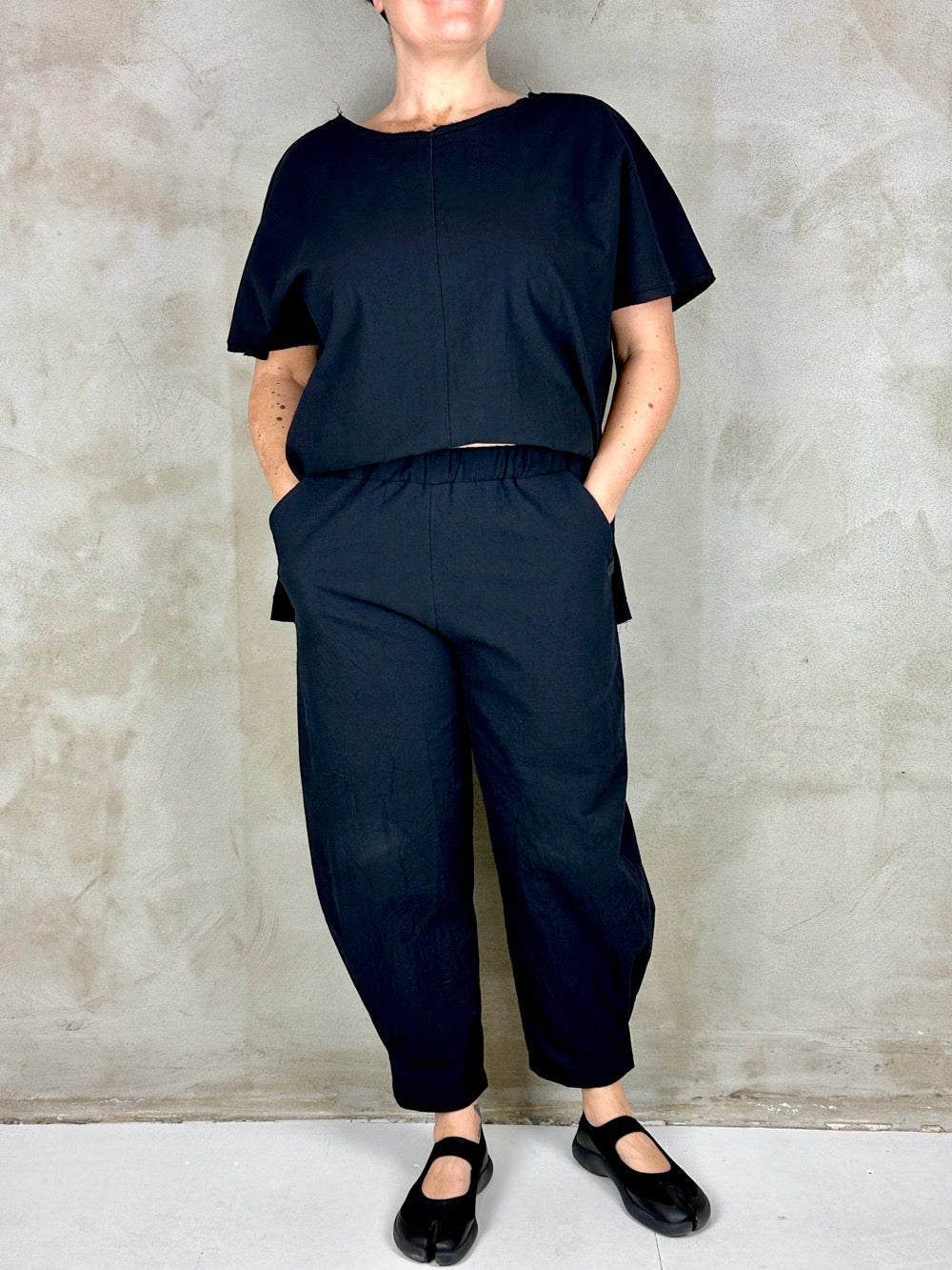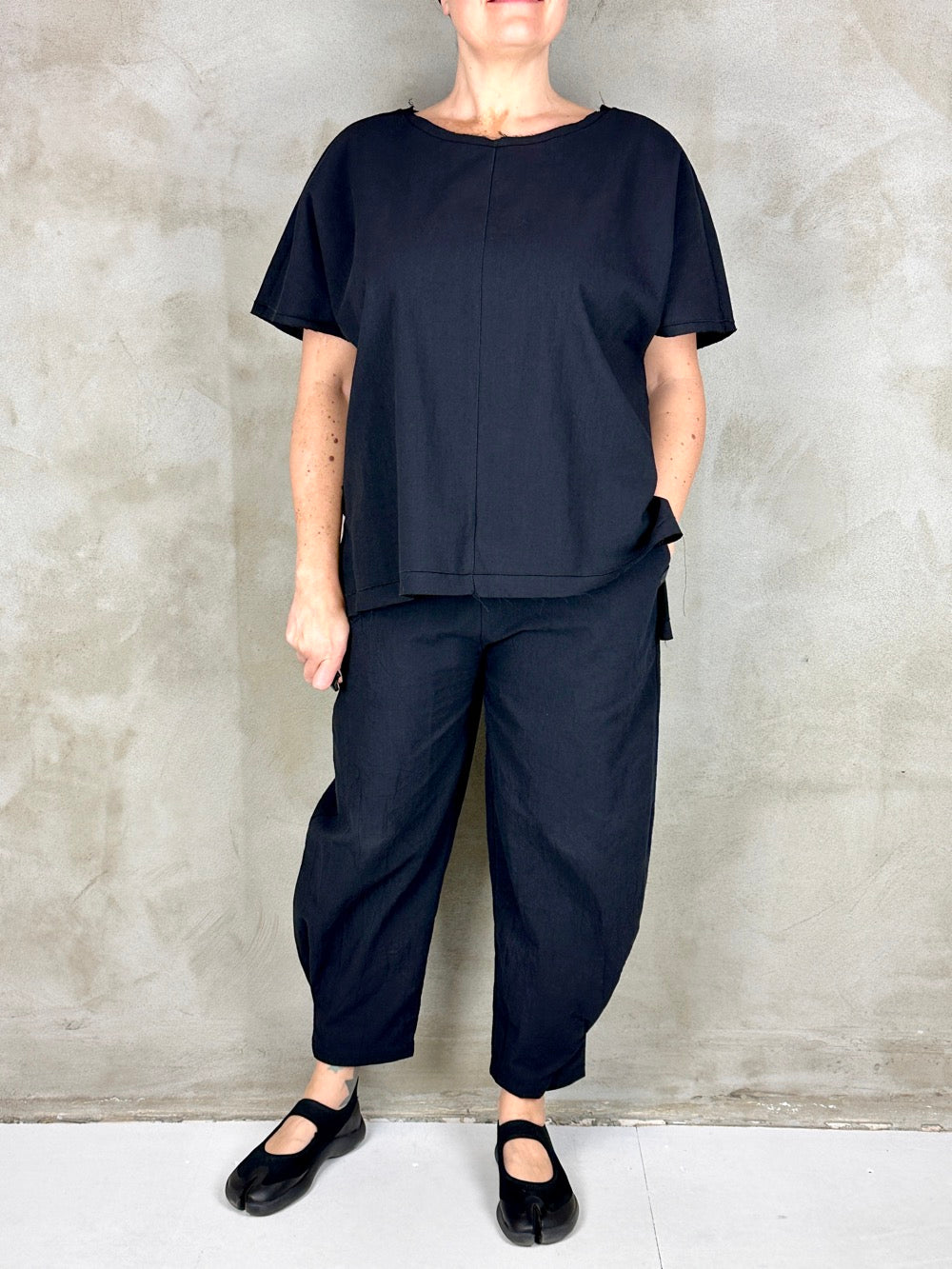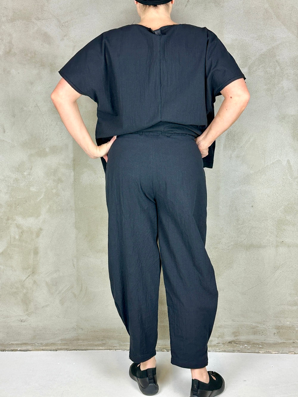 Flotte stumpede bukser i lækker vasket bomuld. Buksen har en god pasform med alm. længde skridt og semi volume i benene. En god forårs/sommer buks i en flot kvalitet som ikke kræver strygning;)